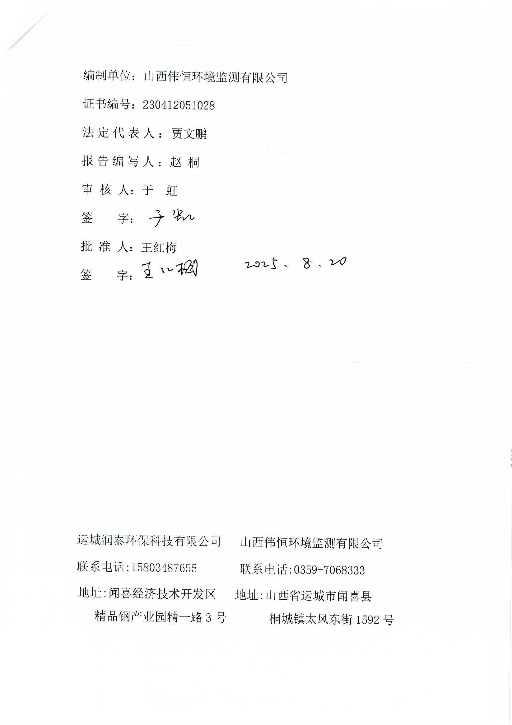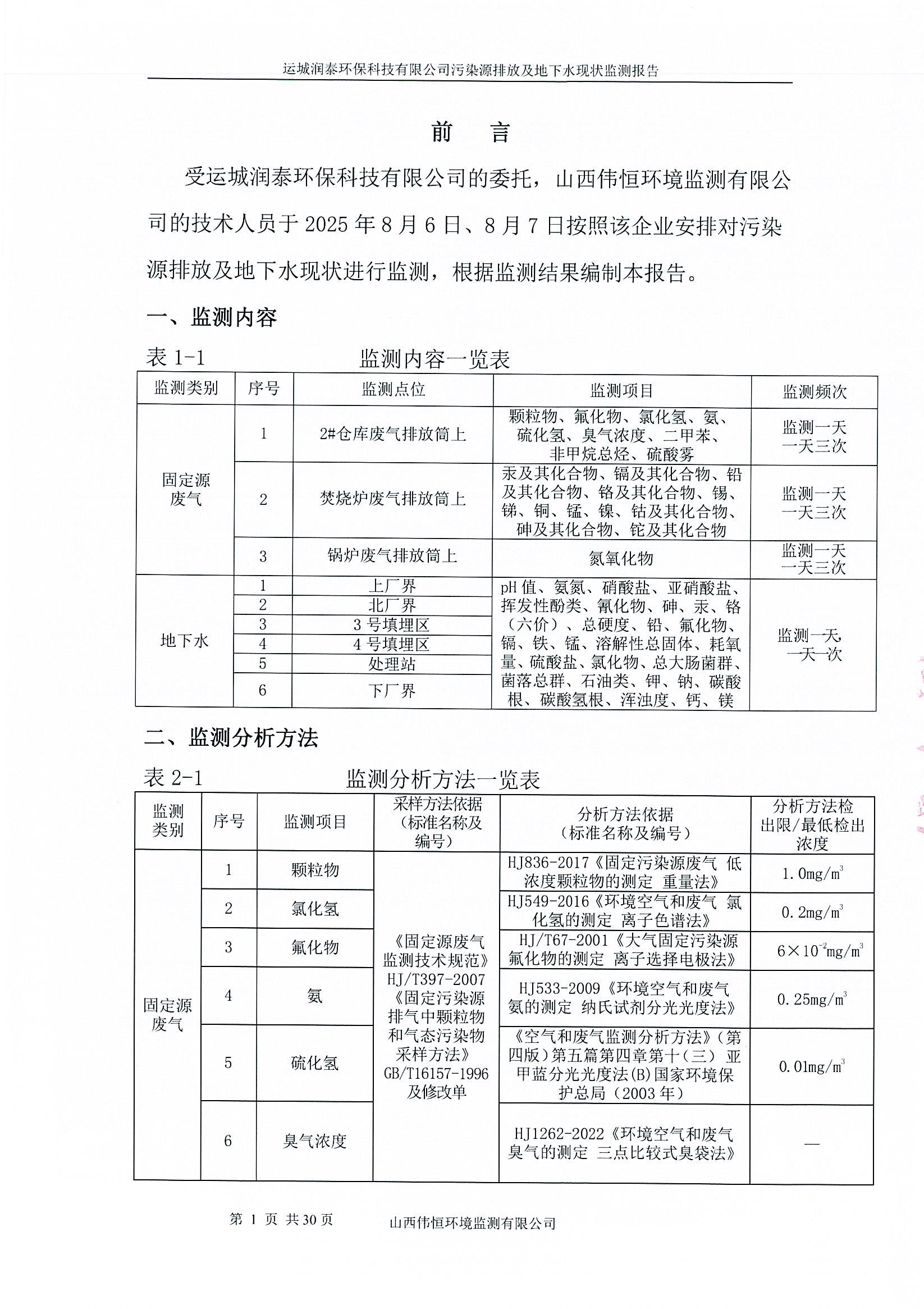 2025年潤泰環(huán)保八月份自行監(jiān)測(cè)報(bào)告