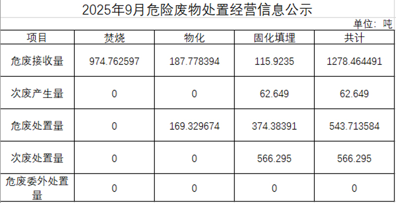 2025年九月危險(xiǎn)廢物處置經(jīng)營(yíng)信息公示