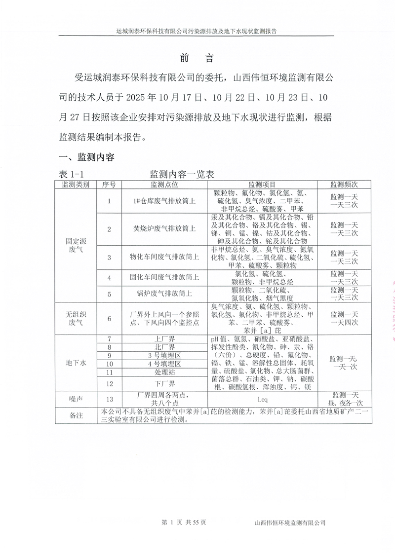 2025年潤泰環(huán)保十月份自行監(jiān)測報告